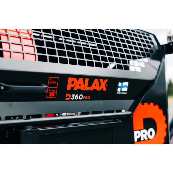 Palax KS 35 er en av kundenes favoritter gjennom tidene. Etterfølgeren til denne bestselgeren, den nye generasjonen Palax D360, fokuserer på praktisk og tekniske funksjoner uten å gå på kompromiss med det imponerende designet. Palax D360 er kraftigere og raskere å bruke. Den pålitelige kubbepresseren har nådd et nytt funksjonsnivå, og den justerbare trelengdestopperen er også forbedret. Vi forbedret utformingen av sikkerhetsnettet for å lette vedlikehold av stål og for å øke kanalens synlighet. Den nye Palax D360 har et 20 % større oljevolum, noe som reduserer oljetemperaturen betydelig.